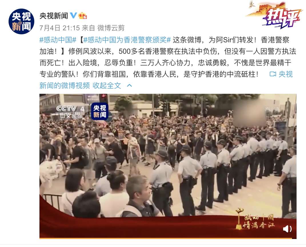 感動(dòng)中國(guó),情滿(mǎn)香江,致敬這群可愛(ài)又可敬的人,你們的精神與行動(dòng)終將被歷史銘記。今后,有香港國(guó)安法與香港市民站在一起,捍衛(wèi)祖國(guó)尊嚴(yán)、繼續(xù)香港繁榮、維護(hù)市民安寧……指日可待。明珠煥新彩,未來(lái)可期?。ㄎ呢w靜)